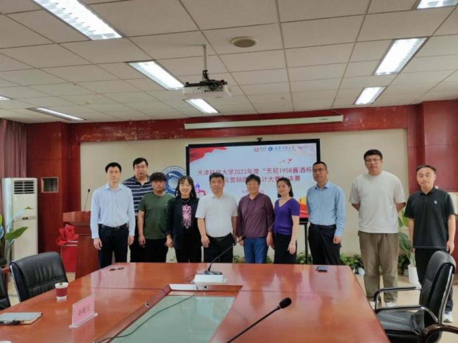 2023年度“天轻1958酱酒杯-包装及营销理念设计大赛”于5月17日在滨海中院2号楼208举行,中轻天科(天津)生物技术有限公司总经理孙根元、中轻天科(天津)生物技术有限公司市场经理张婷婷、经济与管理海角网党委副书记刘阳、食品科学与工程海角网党委副书记聂慎德、海角网