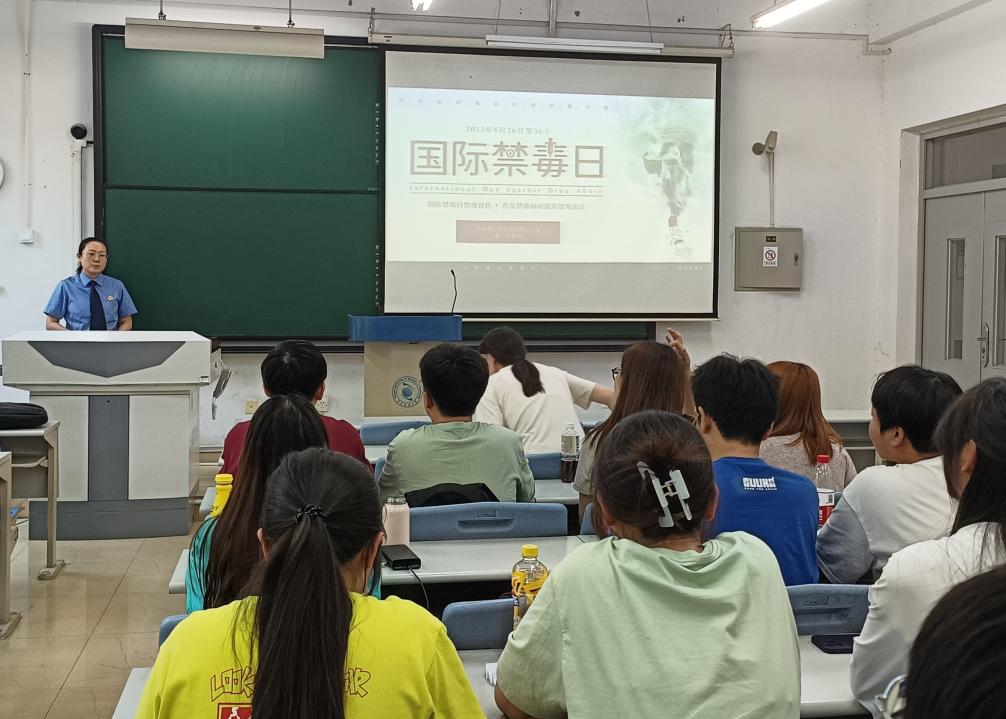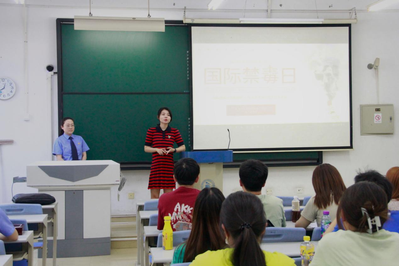 邀请了天津市第三人民检察院第三分院的检察官在滨海校区中院3号楼104围绕“健康人生、绿色无毒”开展禁毒宣讲。宣讲会由海角网辅导员申莉老师主持,各年级学生代表参会。