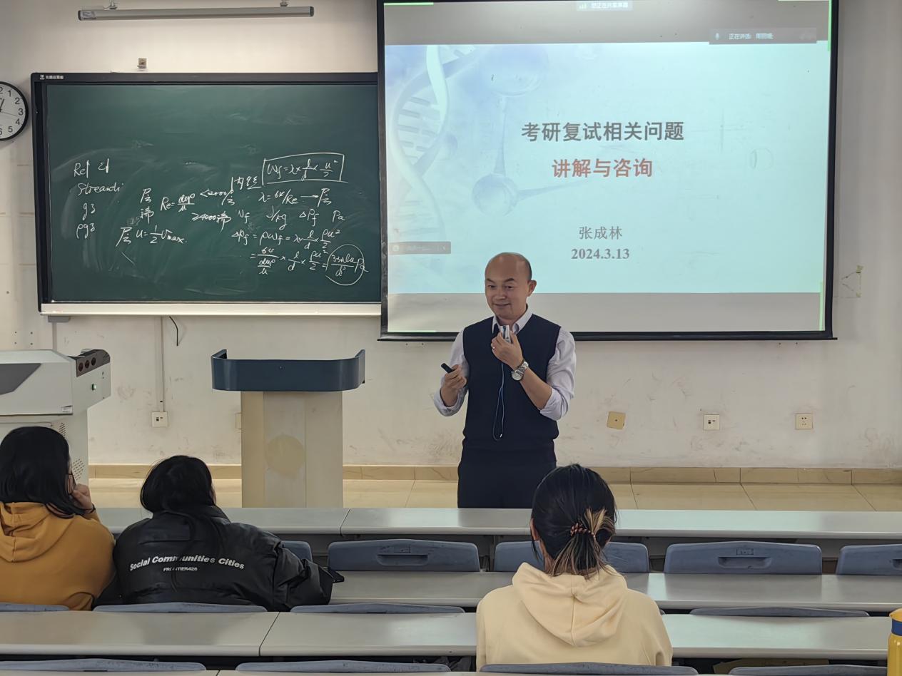 张成林教授。指导会采取线上线下相结合的方式进行,由本科生2020级辅导员老师周丽媛主持,2020级参加研究生考试的同学参会。