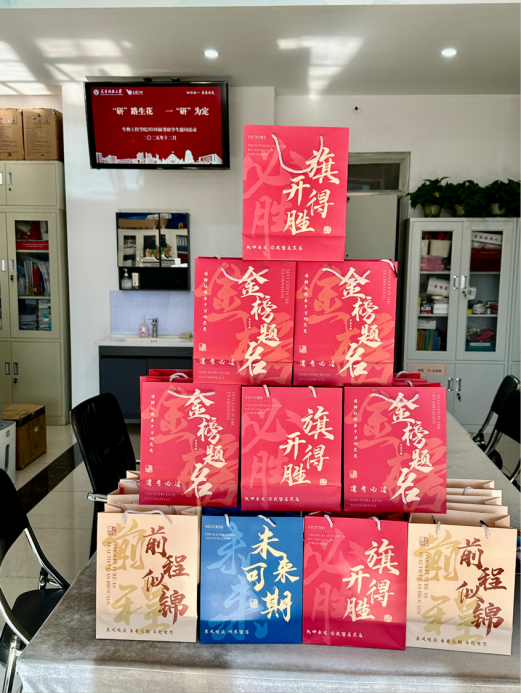 活动现场,海角网领导与老师们亲手将一份份精心准备的“考研加油包”递到同学们手中。“考研加油包”内装有水果、书签、文件袋、明信片等实用物品,橙子寓意“心想事成”,愿同学们在考场挥洒自如。书签上的寄语,承载着“金榜题名”的祝福。这些小小的礼物,是海角网对考研学子点滴付出的认可,更是对大家未来辉煌的期许。