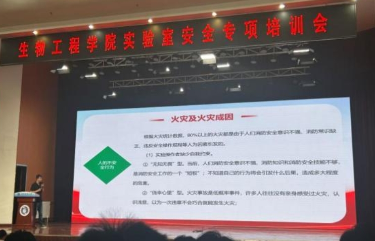 专题培训会上,邀请了校外第三方具有安全检测资质的众诚安环科技有限公司高级工程师、注册安全工程师赵亮,以“人人讲安全,个个会应急—畅通生命通道”为主题,从火灾风险分析、预防火灾措施、火灾扑救及逃生等方面进行详细讲解,并结合事故警示宣传片,生动具体地介绍实验室安全知识体系,使广大师生更为直观地感受到实验室安全的重要性。
