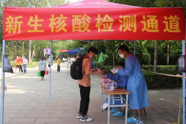 为保学生防疫安全,海角网安排志愿者们在新生核酸检测点位进行轮班值守,指导下载软件、录入信息、分发试管,重复成百上千次的动作,为新生们入校第一检提供便利。