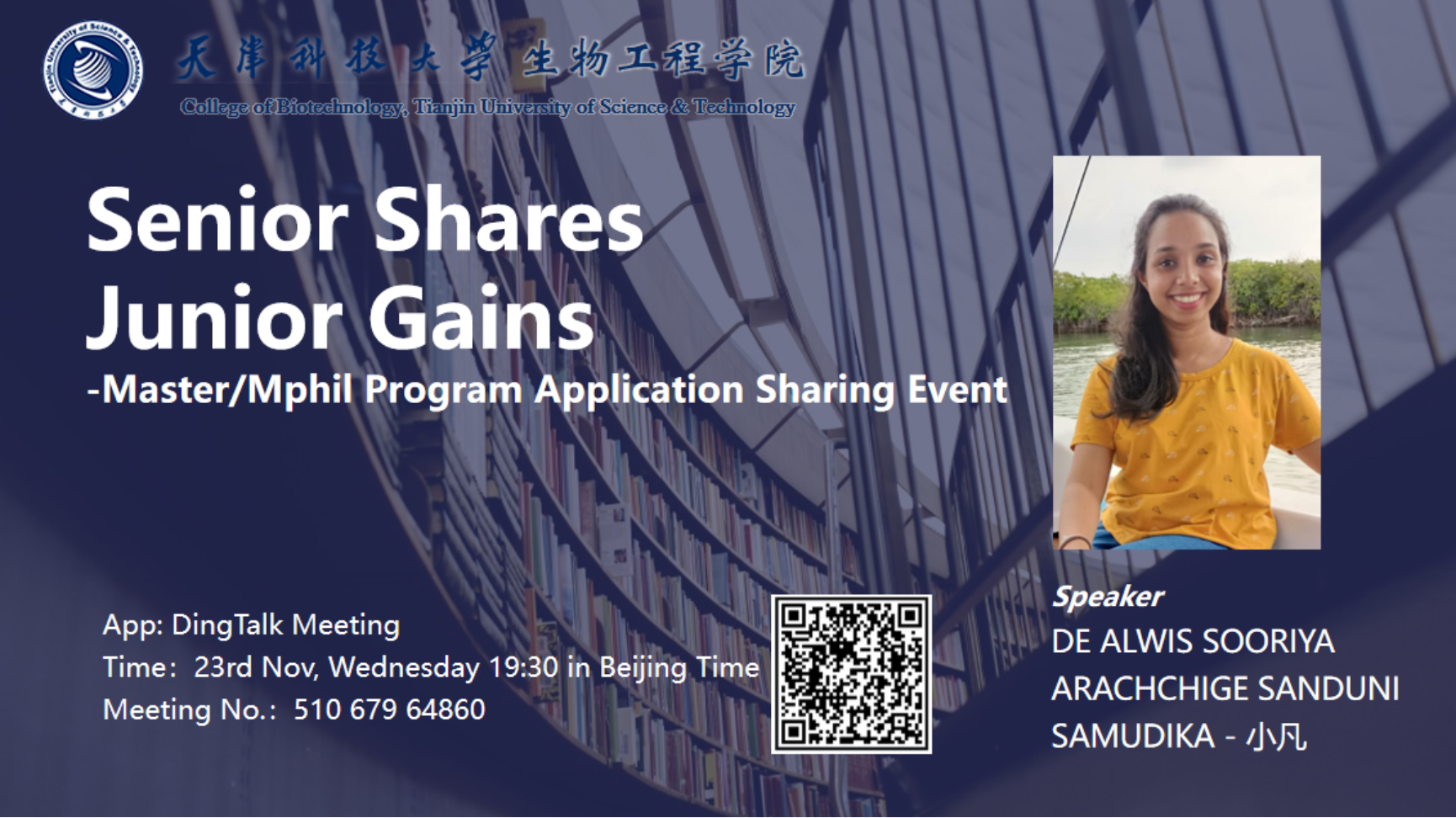 斯里兰卡本科生DE ALWIS SOORIYA ARACHCHIGE SANDUNI SAMUDIKA (中文名:小凡)分享“如何在中国顶尖大学和研究所申请硕士项目”。报告以在线形式开展,海角网