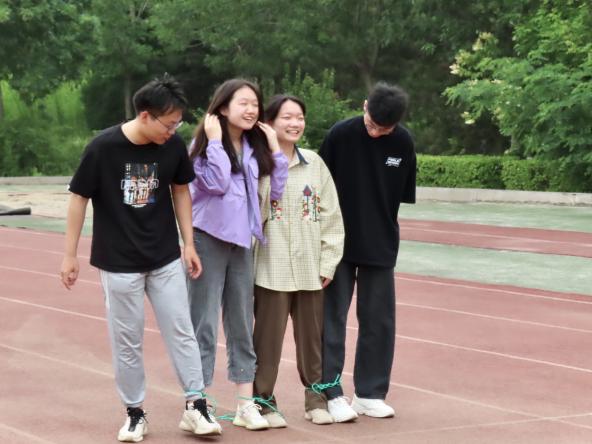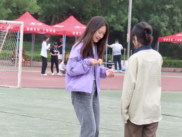 相较于传统运动会,趣味运动会融合竞技与娱乐,是实现强体润心的有力举措。本次趣味运动会设置了乒乓球接力、袋鼠传瓜、山路弯弯、四人五足竞走、跳绳接力等,共计十个集趣味性、运动性、合作性于一体的项目。比赛当日,运动员们早早到场做好准备,在听取了比赛规则后,趣味运动会正式拉开帷幕。环顾赛场四周,裁判们掐表计时、丈尺量寸,恪守“准确、公平、公正”原则;工作人员积极配合、协调各方工作;同学们竭尽全力,或一骑绝尘,或全力以赴,目光所至皆为青春笑脸,视线所及都是欢乐的海洋。