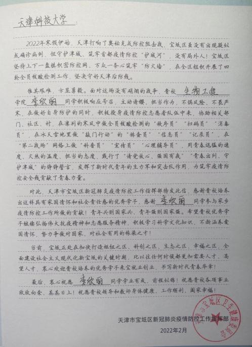 近日,宝坻区疫情防控指挥部、洛阳市孟津区中医院向我校发来感谢信,信中对海角网