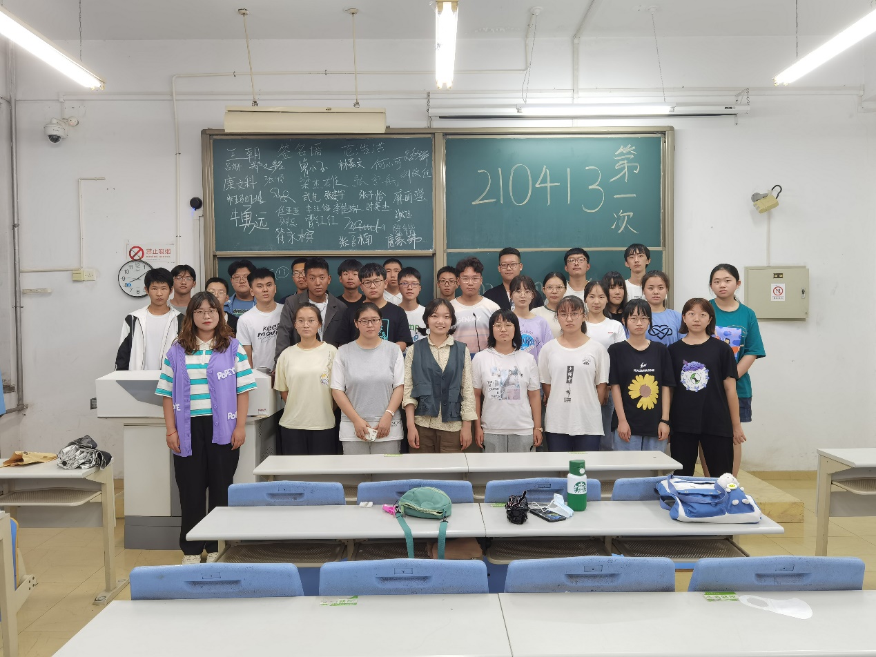 210413班,班助吕姗带领大家自我介绍,共同制作了黑板签名墙,留下美好的回忆。然后班助替大家解答了有关学习、生活等其他方面的困惑,令他们的大学生活更加明朗。