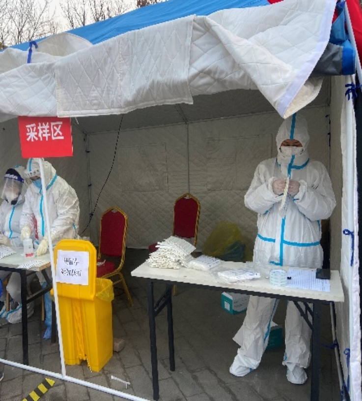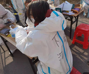 毛淑红、孙华老师分别在河西区、揽涛轩社区参加核酸检测工作