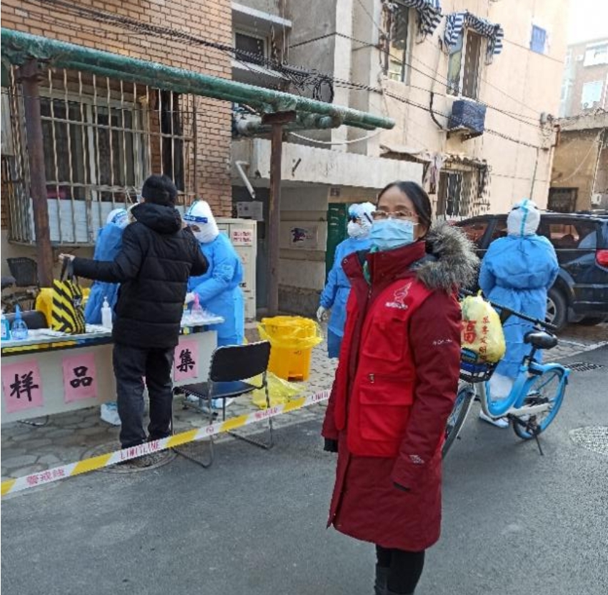 除图中老师外,刘夫锋老师、崔建东老师、于爱群老师、李庆刚老师、刘振兴老师、李中媛老师、马倩老师、刘蛟老师、谢周杰老师、胡晓静老师和李欣老师也在疫情刚开始就积极投身到社区的疫情防控的服务保障中,为抗击疫情贡献着自己的一份力量。赵津莹、杜英杰,王凤华三位老师坚守学校核酸检测一线,积极协助维持入场秩序,组织在校师生员工进行了三轮核酸检测。