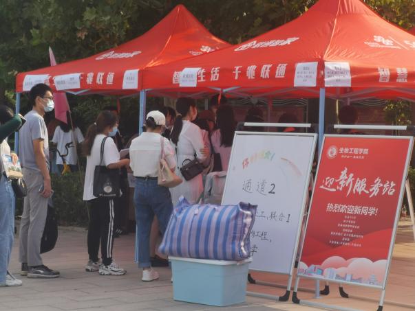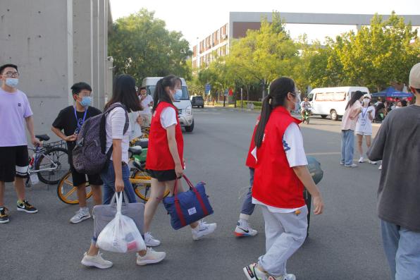 校园内,身穿马甲的志愿者们,从新生手中拎过一件件行李,一趟趟来回穿梭在人群中,志愿者的一声欢迎、一个微笑、一次讲解,点点滴滴汇聚了他们的热情与期待,从校门口到学生公寓都记录着他们忙碌的身影。