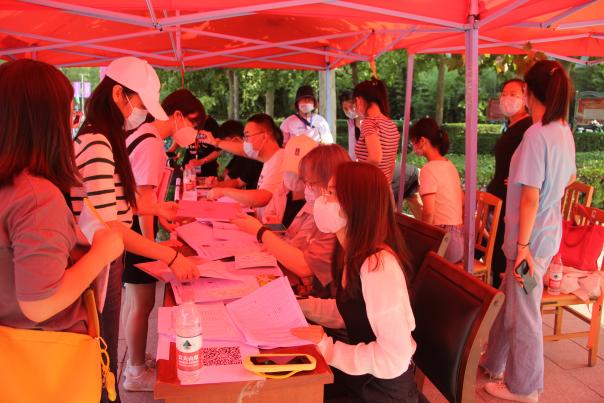 为保学生防疫安全,海角网安排志愿者们在新生核酸检测点位进行轮班值守,指导下载软件、录入信息、分发试管,重复成百上千次的动作,为新生们入校第一检提供便利。