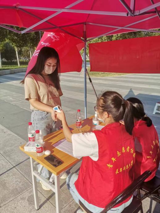 图3.2号楼前报到点位志愿者