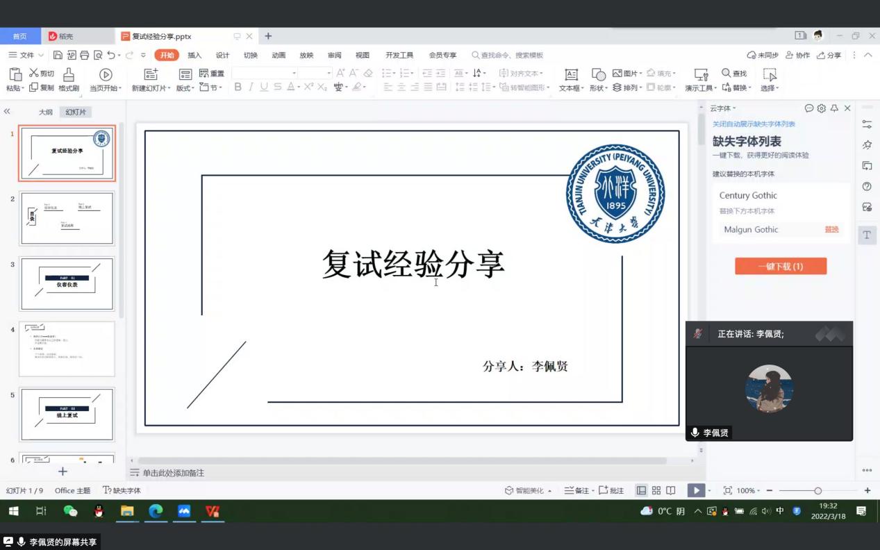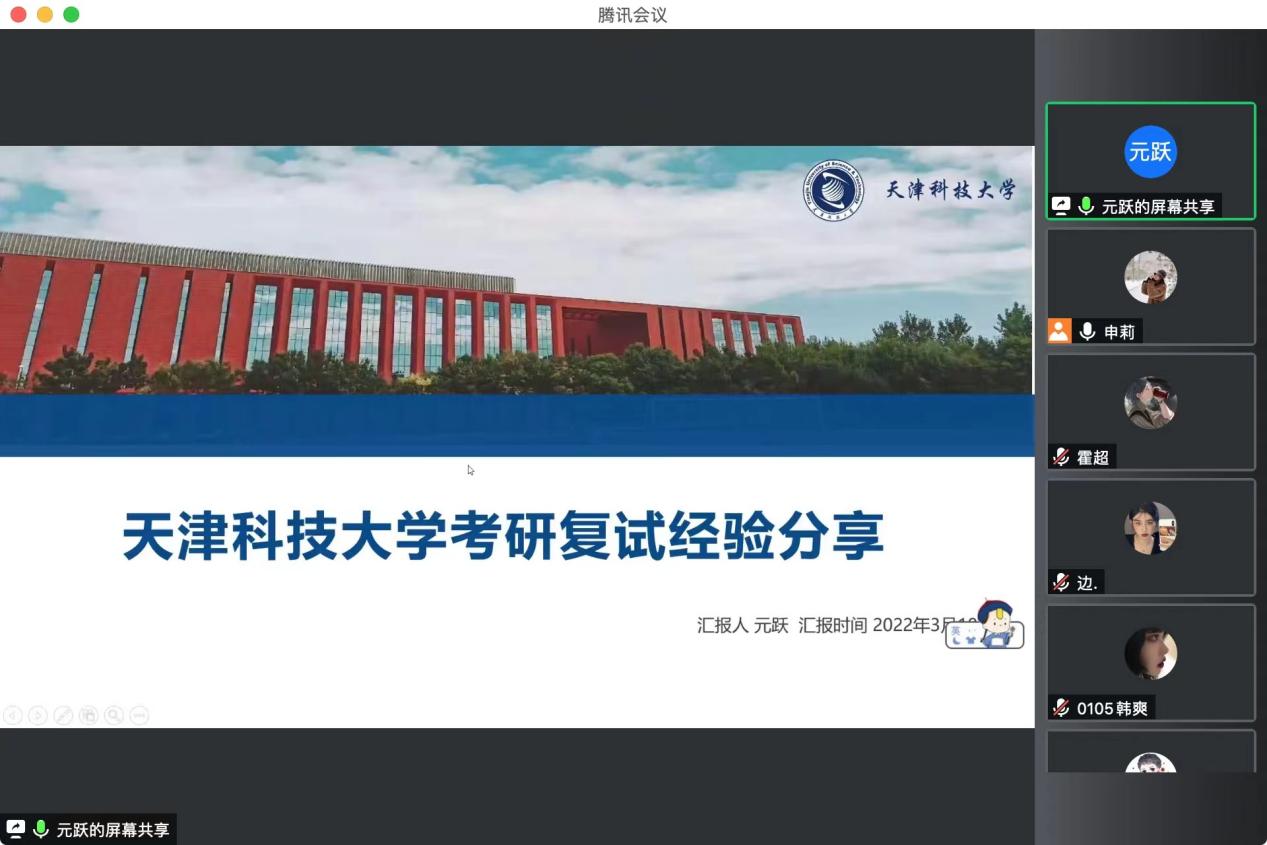 会议上,元跃同学从“自我认知”、“复试准备”以及“复试注意事项”三个方面详细讲解了天津大学考研复试所需要了解的内容和注意事项。马宇睿同学从“复试内容”和“复试注意事项”两个方向向同学们分享了报考天津南开大学的复试经验。李佩贤同学从“仪容仪表”、“线上复试”和“复试流程”三个方面向同学们详解了报考天津大学所需的复试经验。