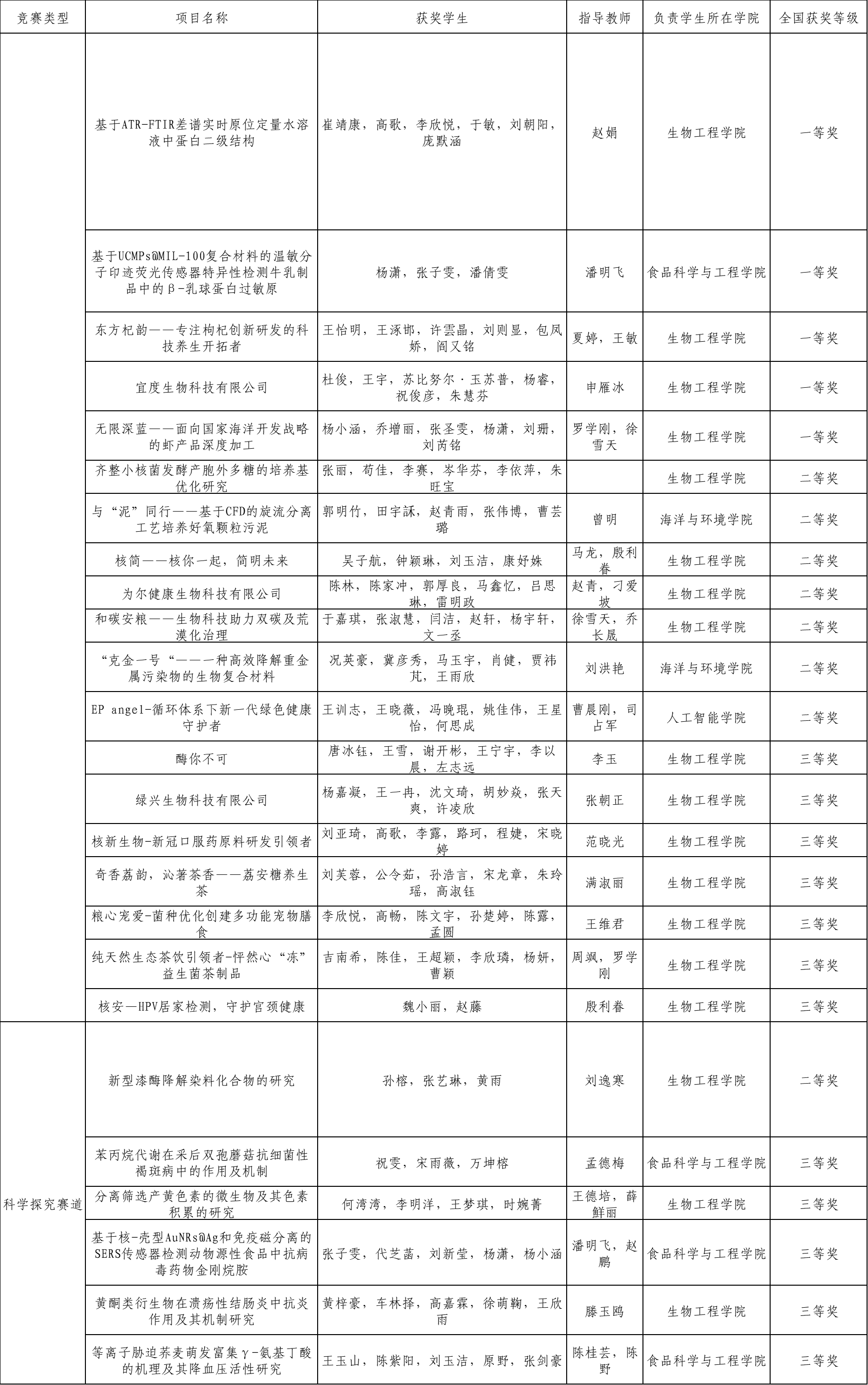 附:2022年全国大学生生命科学大赛(国赛)获奖名单